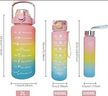 Whether you're a fitness enthusiast, student, working professional, or frequent traveler, this versatile bottle set caters to all hydration needs. Use the 2L bottle for workouts, the 900ML for office use, and the 300ML for quick sips on the go.